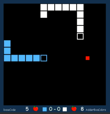 The AI Snakes competition is based on the well-known game of Snake, where one snake has to chase apples in order to grow. However, for this contest the game was rebuilt by a team from Innopolis University to include two agents. Our members learned a lot about implementing algorithms such as breadth-first search and minimax with alpha-beta pruning. Furthermore, a lot of creativity was used in order to make sure that the AdderBoaCobra won as many games as possible.